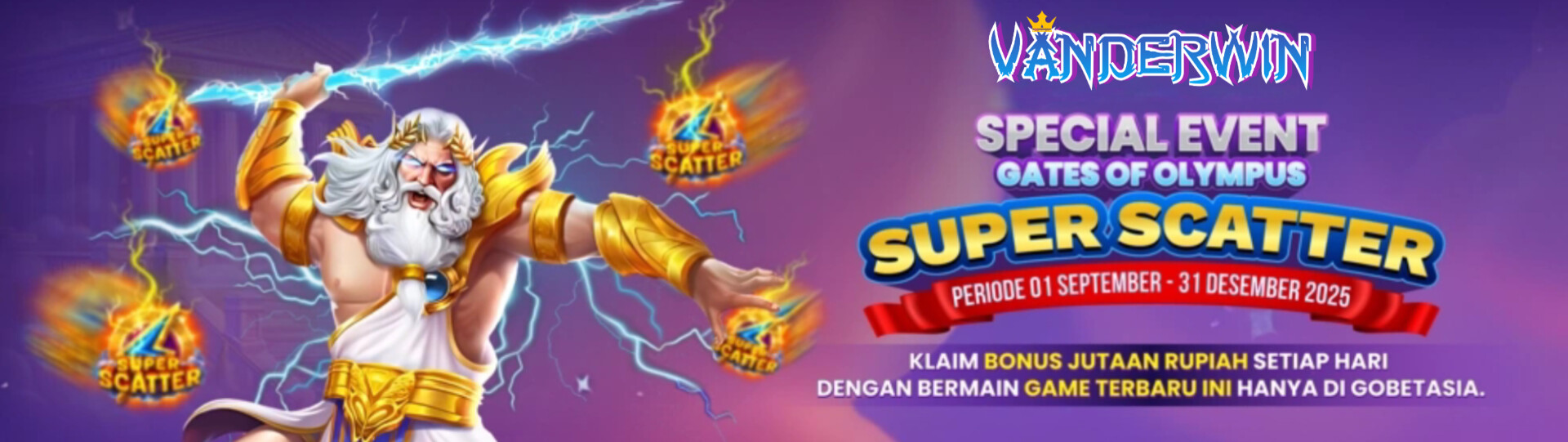 Dapatkan Extra Bonus Jutaan Rupiah setiap harinya dengan main di Gates of Olympus Super Scatter VANDERWIN ..!!!